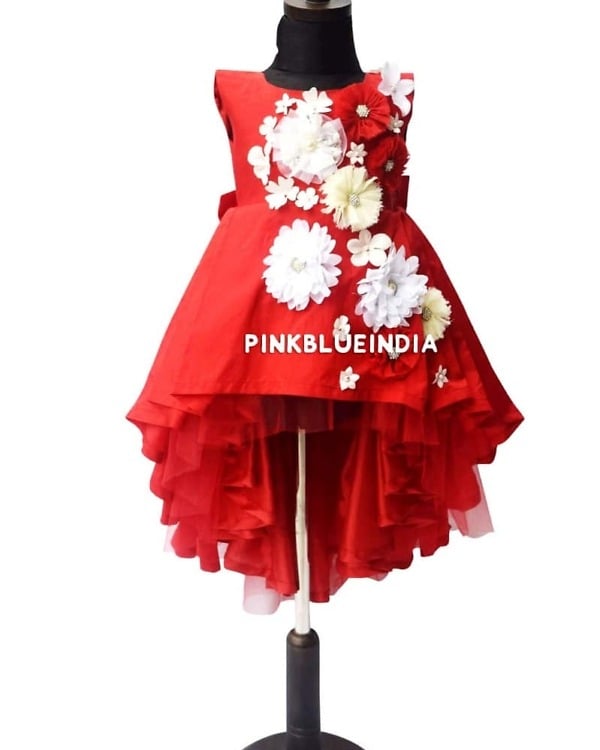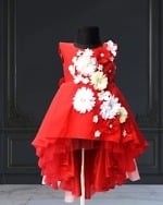 Define grace and elegance for her with this girl high low dress. Stunning red dress for girl with sleeveless bodice and interesting high low flare is adorned with pretty white flowers. Have this red party dress for girl child which has beautiful flowers to die for. Buy online this exclusive high low dress for girl which makes a fantastic pick for her birthday celebrations and wedding ceremonies. Shop kids high low dress online for your princess for her special occasion. Dressed in this red frock for baby girl, she will win every heart.
