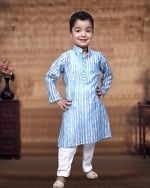 This is a simple yet classy combination of solid yellow colored kurta matched with white pajamas. Buy online this comfortable and evergreen baby kurta pajama made of premium cotton fabric to dress him for festive occasion and wedding ceremony in the most elegant boys Indian wear.