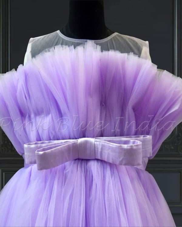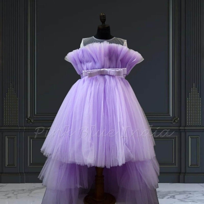 Buy stunning online customised multi layered bouquet party dress for your daughter. Perfect trendy lavender color gown for party.