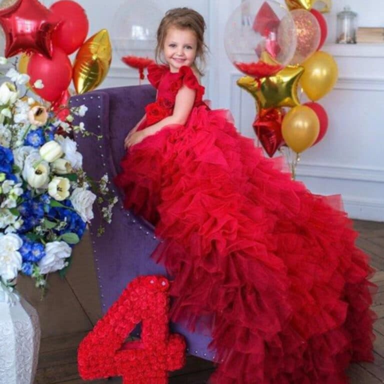 Simply stunning red colours layered tail gown to dress your baby girl for birthday parties and fashion shows is right here. A wonderful birthday party dress for 6 months to 15 years old girls is a handcrafted fairy tale dress for baby girl in ravishing red. The highlight of this beautiful masterpiece is the fluffy net flare weaved into layers adding so much volume and glamour to it. Enjoy worldwide shipping and best prices at PinkBlueIndia with this fabulous baby birthday dress online and don’t forget that it comes with a matching hair accessory.