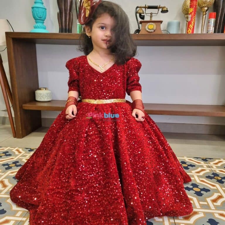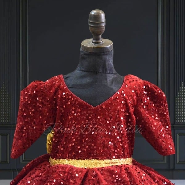 Perfect fit and beautiful quality. Maroon Sequins Ball Gown Girls Party Wear