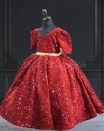 Wonderful design and vibrant colors. Maroon Sequins Ball Gown Girls Party Wear