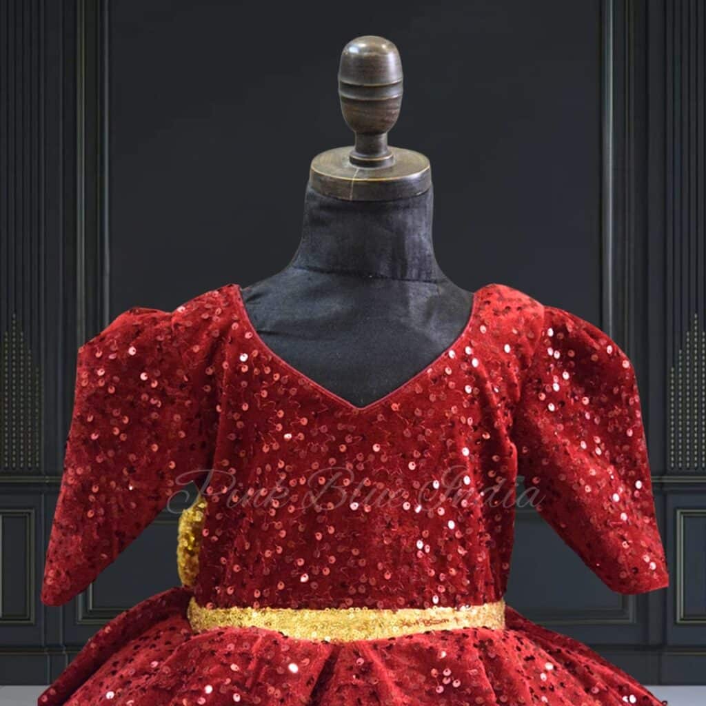 Perfect fit and beautiful quality. Maroon Sequins Ball Gown Girls Party Wear