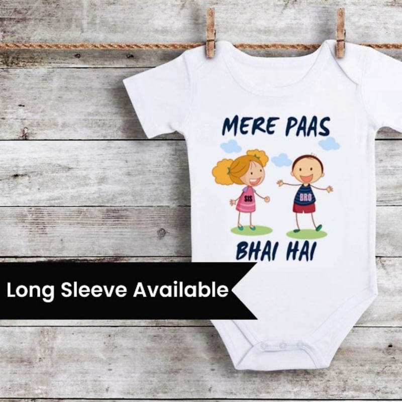 Designed for sisters with brothers, this lovely gift idea of newborn t shirts and 1st Rakhi onesie is truly incredible. Dress her up in the cutest first Raksha Bandhan onsie with “Mere Pass Bhai Hai” message. No other first Rakhi outfit expresses the brother sister love like this 1st Raksha Bandan onesie for baby girl. Buy online from the latest collection of 1st Rakhi onesie that make a promising newborn baby gifts on Rakhi. This first Rakhi outfit has been made in cotton and is available in both, short and long sleeves to make the best Rakhi present for new baby.