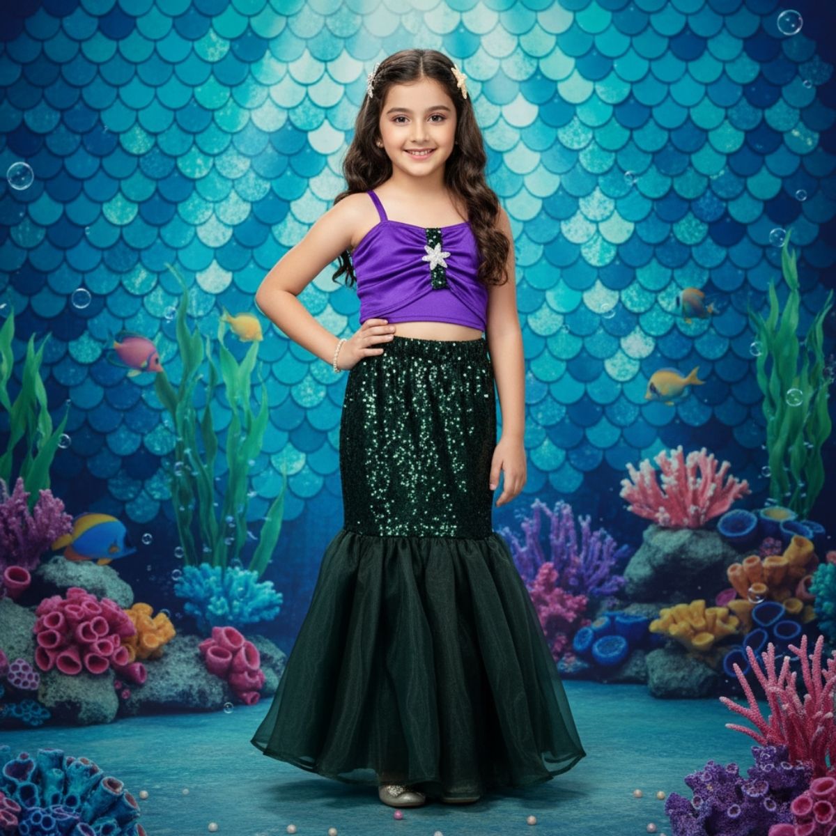 Mermaid theme crop top and sequence skirt set is a perfect choice for your daughter’s Birthday Party.