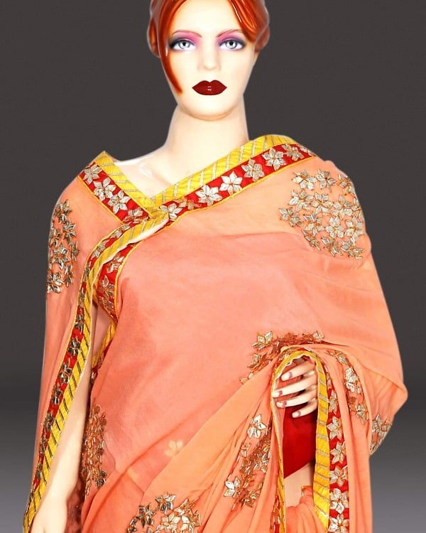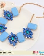 Go for the high quality designer partywear jewelry available for sale at our online store. This is an exquisite special occasion necklace in latest designs. It is an attractive piece consisting of pendants with orange and golden flowers made with stones along with white pearl beads in between. This is an ideal one piece dress accessory which promises classy look at the parties.