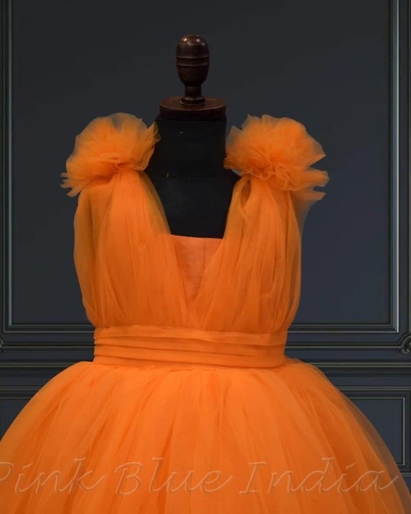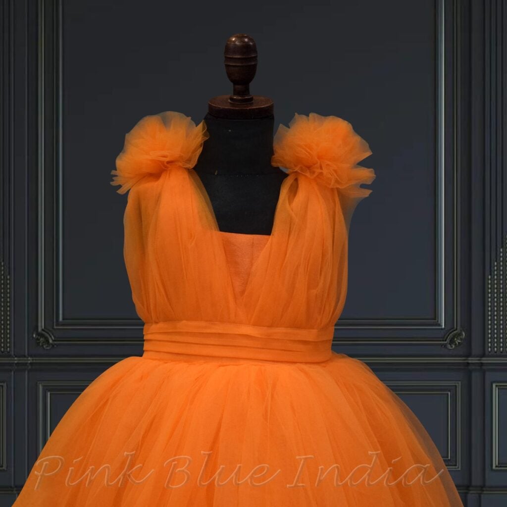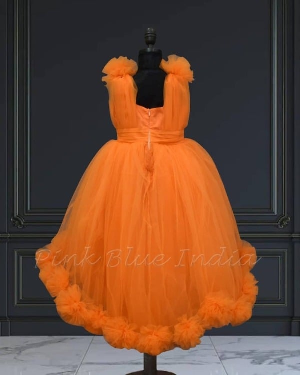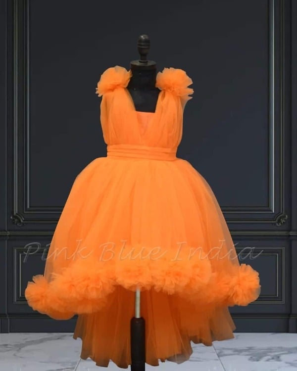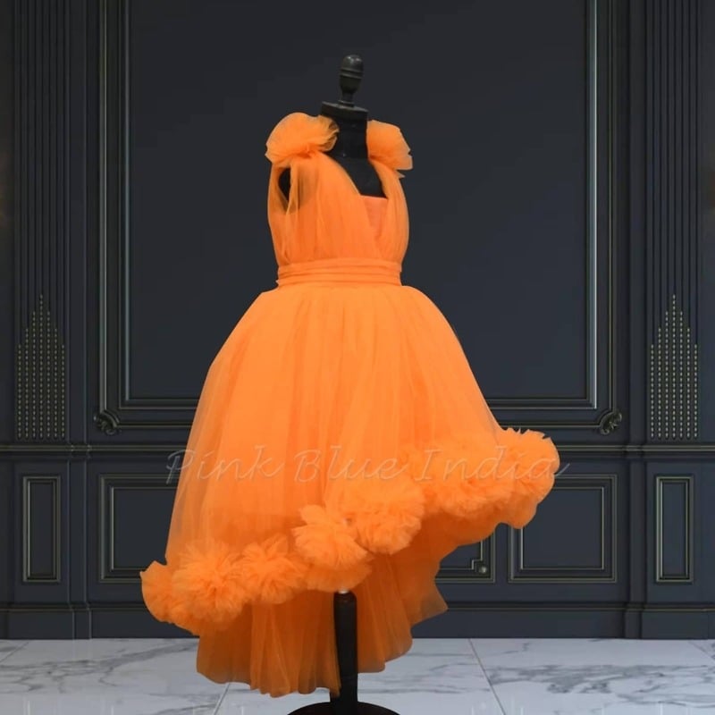Cute tangy orange color Summer high low dress is perfect for any occasion, from a baby, toddler & teens birthday party to a wedding function.