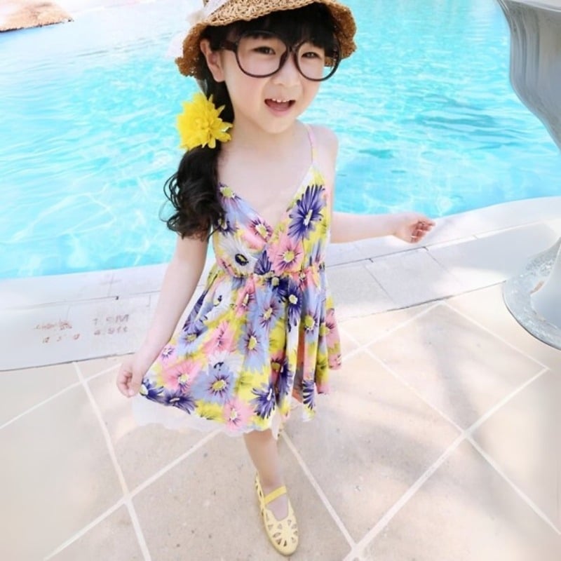 1 review for Cute Overlapping Neck Spaghetti Strap Dress with Floral Print For Little Girl