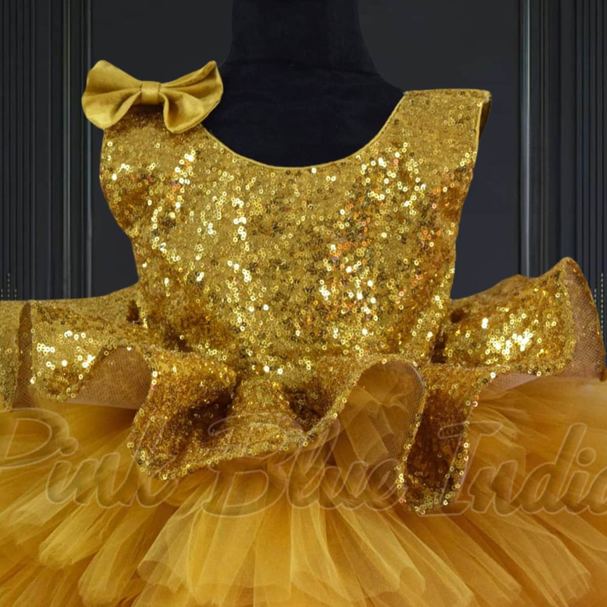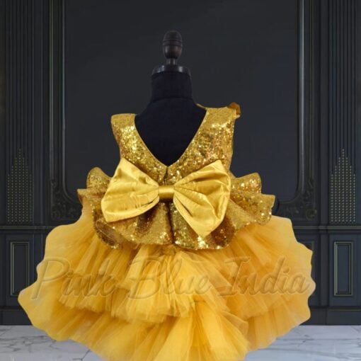Shine on with this blingy golden sequence peplum knee length dress. This party wear dress is perfect for Birthday parties.