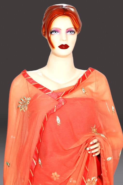You can find this designer saree in our unique collection of chiffon sarees. We also have peach designer wedding sarees in our unique collection of pure chiffon saree for all peach shade lovers. We have worldwide shipping and on time delivery in USA, UK, AUS, and India.
