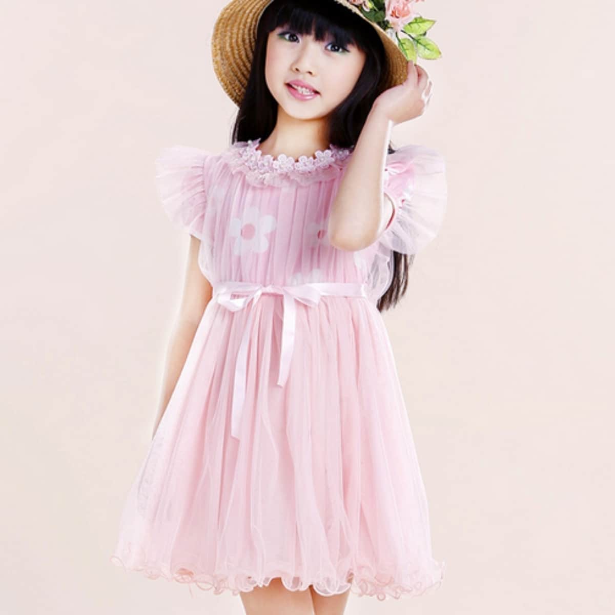 Dress your baby girl in the fashionable clothing in peach pink color. Dress her for birthday parties and weddings in this stylish attire in baby pink net with floral net around the neck and satin ribbon belt. Shop online in India the soothing party outfit for your baby girl which is one of the best dresses for your sweetheart.