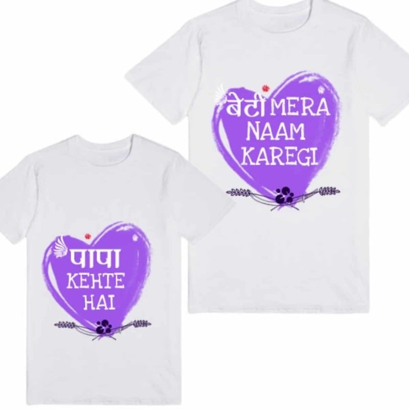 Custom family t-shirt in white with lavender heart print is a beautiful tee with the most inspiring message printed on it. Have this personalized t-shirt made to order for your husband and daughter to buy the most special gift for the two of them. Have it customized as per your requirements and have it as the most unexpected present for your daughter and her father.