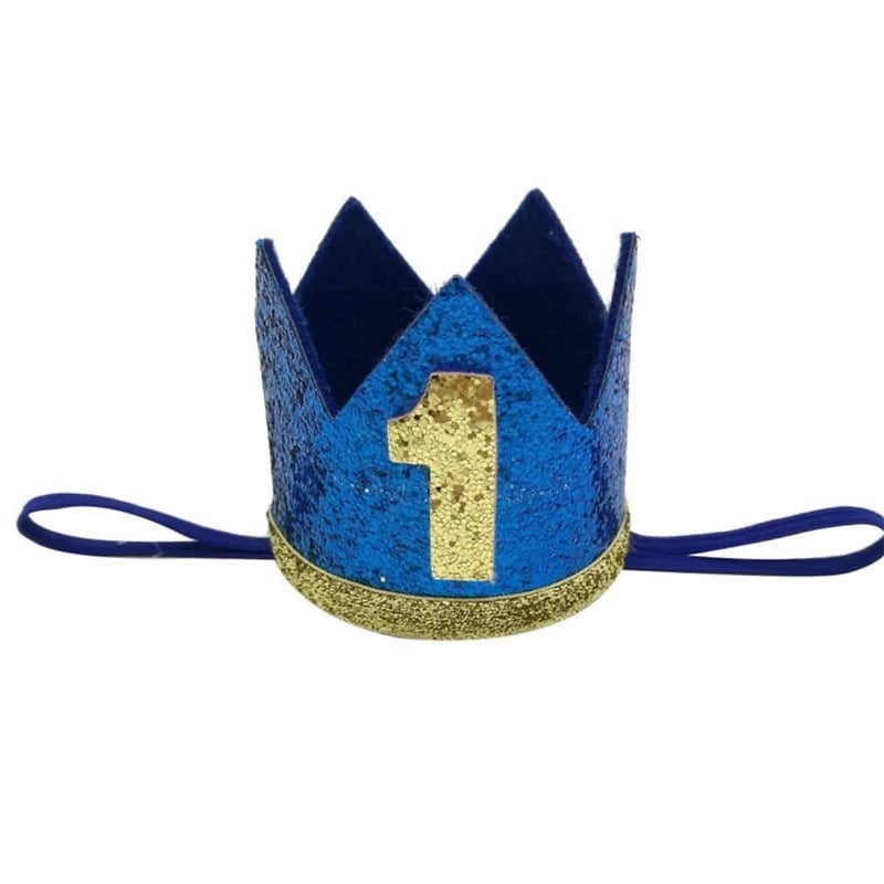 Glittery mini crown handcrafted with 100% wool felt makes a charming baby boy crown photo prop. Have this personalized first birthday crown ordered for your boy which matches flawlessly with this stylish birthday outfit.