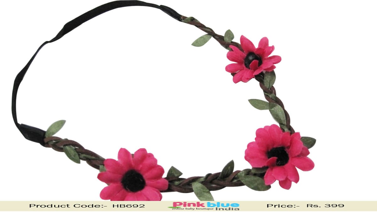 Buy online in India the exquisite and fashionable flower girl tiara for your little princess. The brown braid band comes with flowers in pink and leaves in green that are weaved in the band. This is a super comfortable and exclusive hair accessory for your baby girl which is a perfect pick for every toddler.