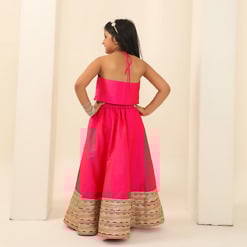 Pink halter neck lehenga for girls, suited for weddings, festive gatherings and family celebrations. A stylish pick with a modern, comfortable fit.