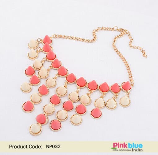 Posh Necklace Studded with Stones in Peach Orange and Off White Color for Ladies