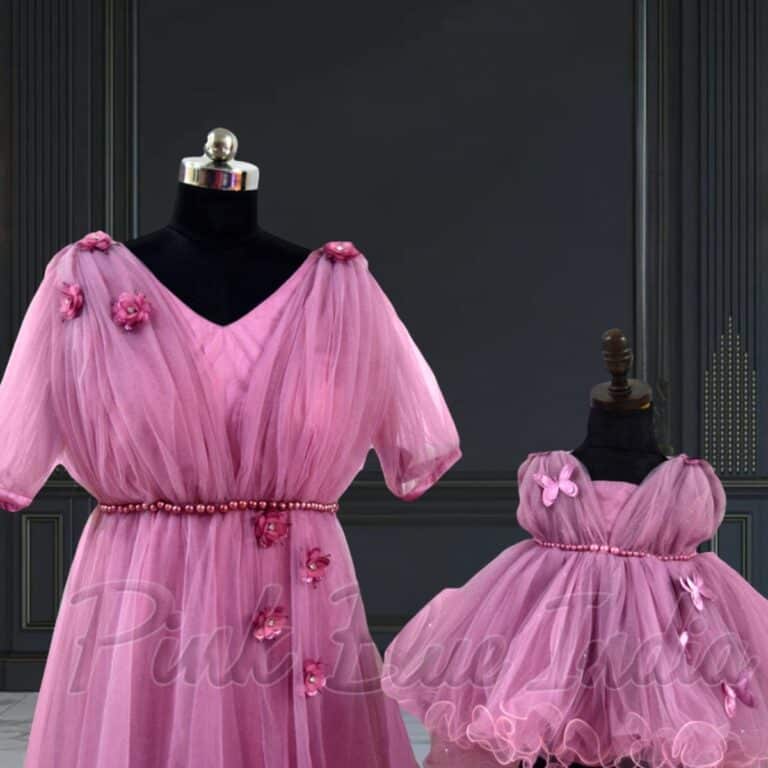 This stunning purple butterfly-themed mother-daughter combo is perfect for birthday celebrations and girly events. Make every occasion special with our unique twinning outfit.