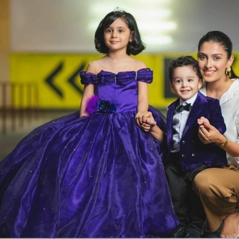 She is going to look like a princess from some fairytale dressed in this purple off shoulder tail gown made of high quality tissue. The intricate pearl work on this designer party wear birthday gown for baby girl adds on a classy touch to it. It makes a gorgeous wear to birthday parties, weddings and special occasions for 6 to 13 year old girls and it even includes a matching hair accessory to dress her hair in style.