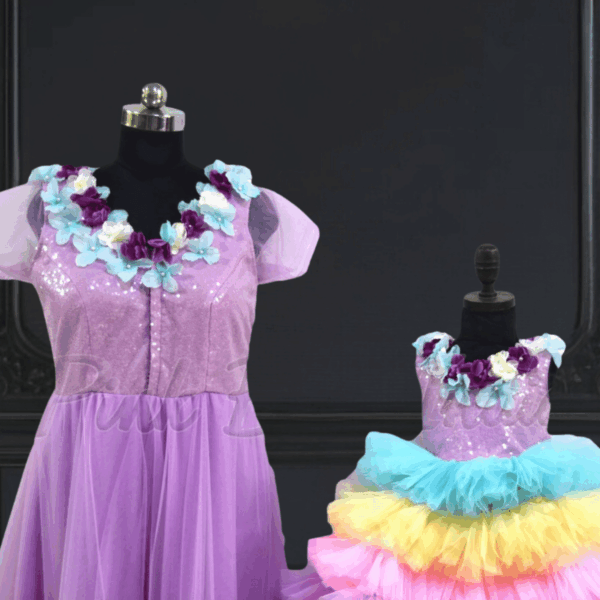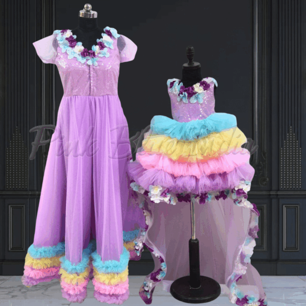 Rainbow Unicorn Theme Mother Baby same Matching Gowns for Theme Birthday party.