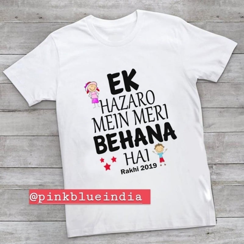 Designed to make Rakhi all the more special, this Raksha Bandhan T Shirt for baby boys is a must pick. Shop online this Raksha Bandhan T Shirt for baby boy which is the best baby gift on Rakhi for him. Crafted in finest cotton in short sleeves, this brother t shirts comes with “Ek Hazaro Mein Meri Behna Hai” print. This bro sis t shirts online perfectly fits the occasion and also makes a thoughtful Rakhi gift for kids in the family.