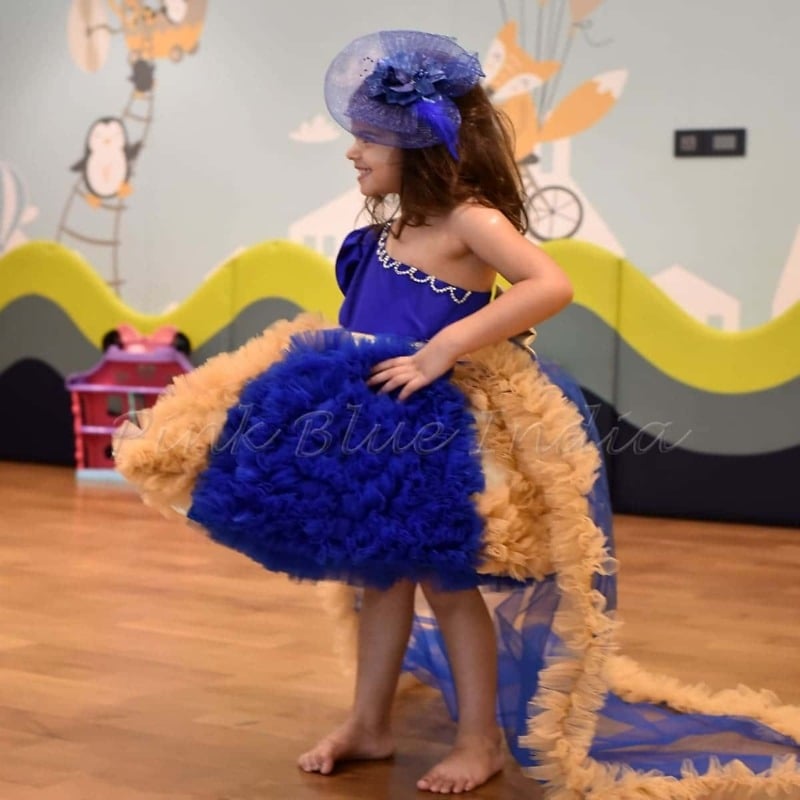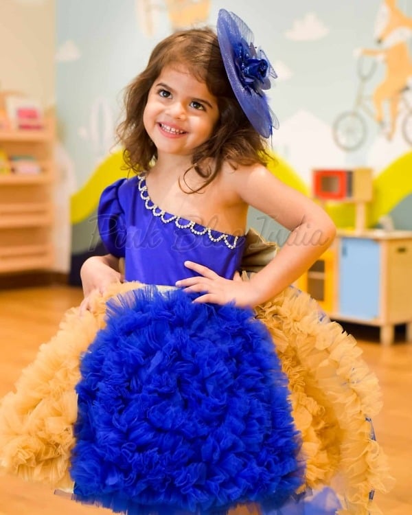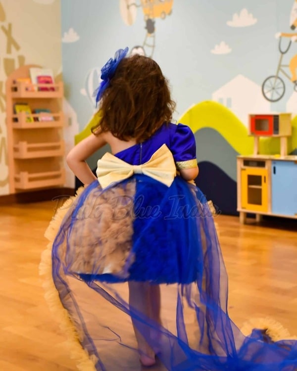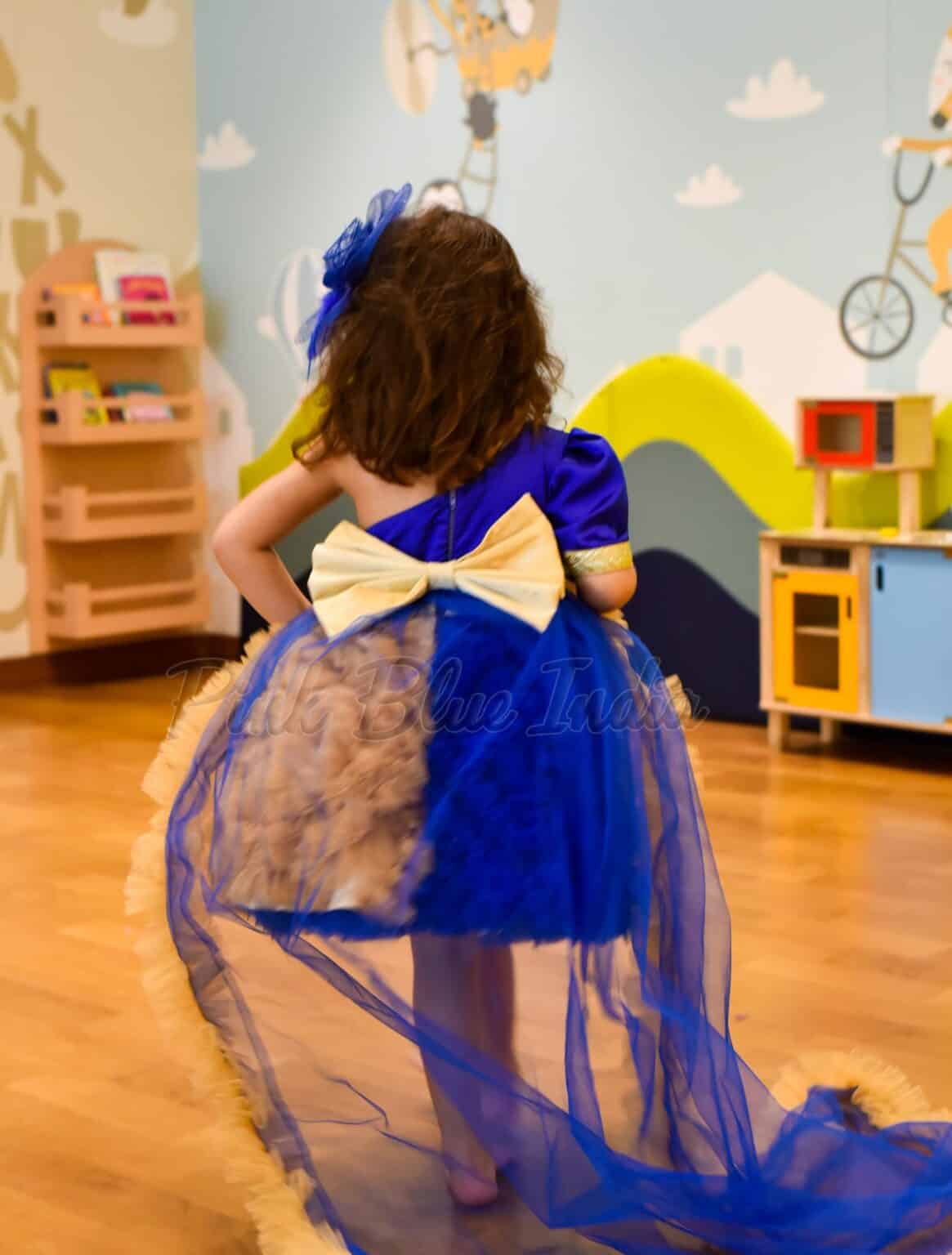 Royal Princess Costume in gold and royal blue color is a perfect choice for a theme birthday party for your little princess. The outfit comes with a detachable train which is a good choice for photoshoots.