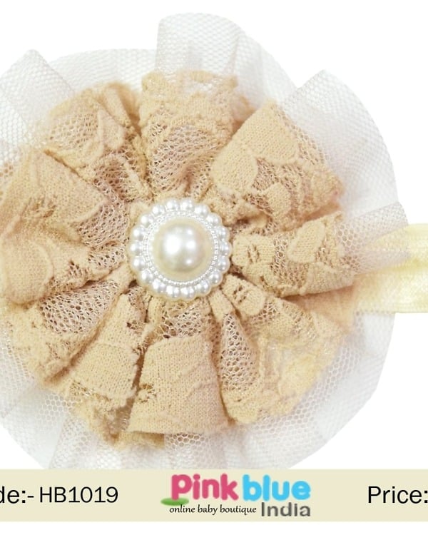 Beautiful Pale Yellow Infant Girl Headband with Brown Net Flower