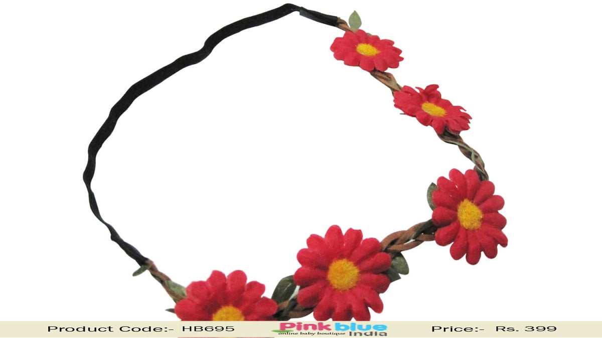 Dress your toddler in the smart tiara hair band available at best prices. It comes in a brown colored braid which has red flowers and green leaves weaved with it. Buy online this comfortable kids floral headband which is a perfect party wear for your little princess. Dress her locks fashionably whenever she goes out.