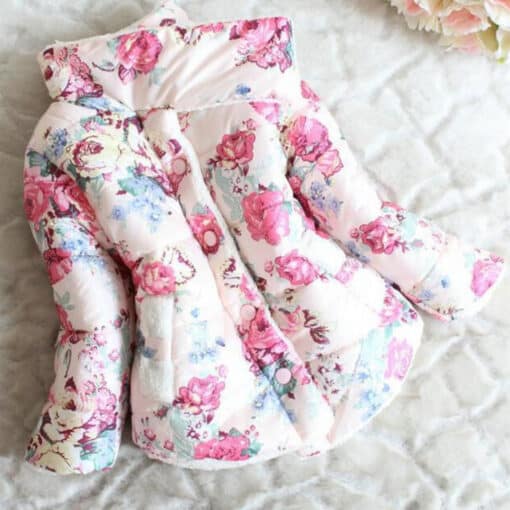Cute Light Peach Baby Girl Winter Wear Jacket with Flower Print