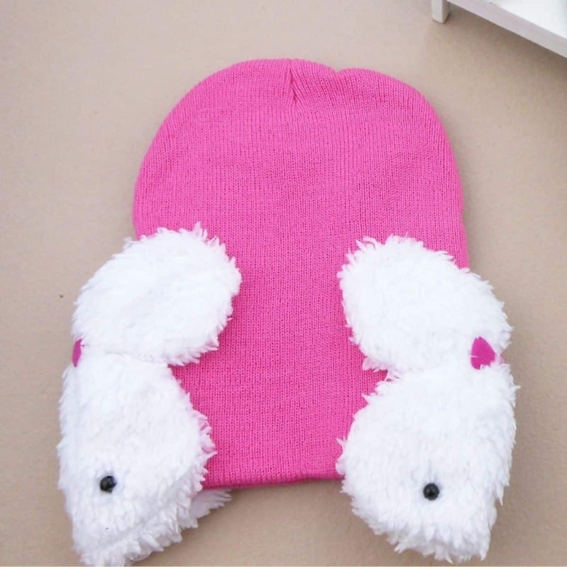 1 review for Shop Online Pink Cap With White Bunnies on Ears for Newborn Babies