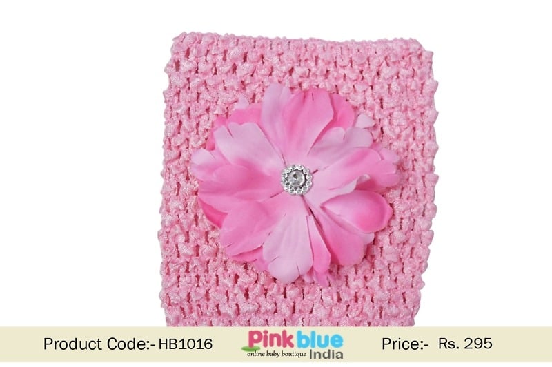 Have the pretty looking cute baby headband added to the collection for your infant from anywhere in India. The stylish stretchable crochet baby pink hair band comes with a pretty diamond embellished flower. Buy online the fashionable fashion accessory for your toddler and dress her smartly for every party.