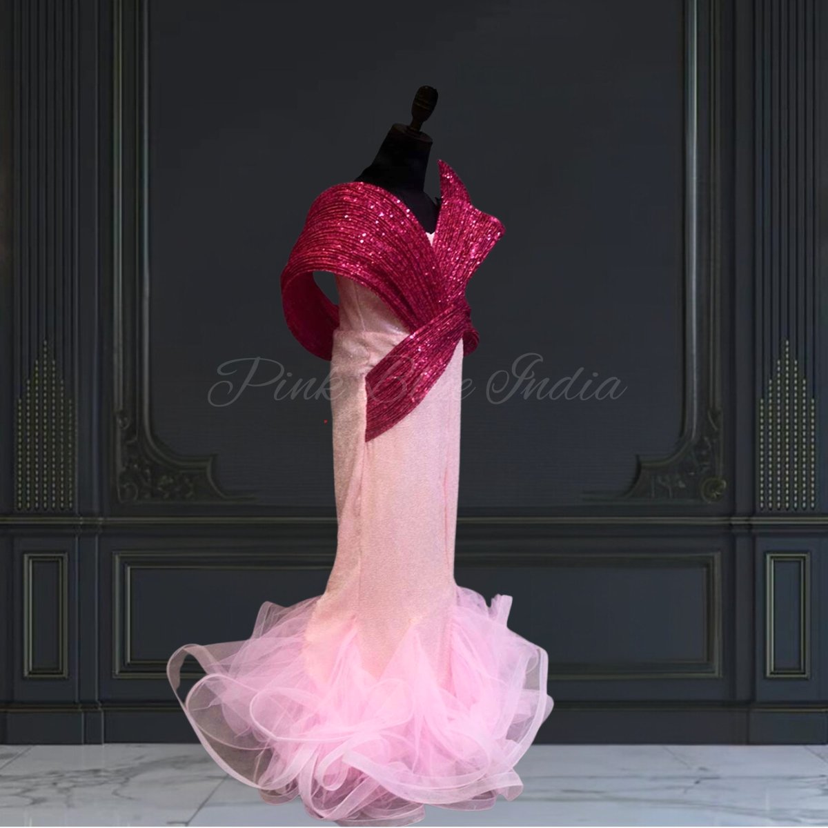 Fish cut gown with structuring in pink for girls of all ages. Dive into the latest trends and find the perfect fish cut party wear dress for baby girls.