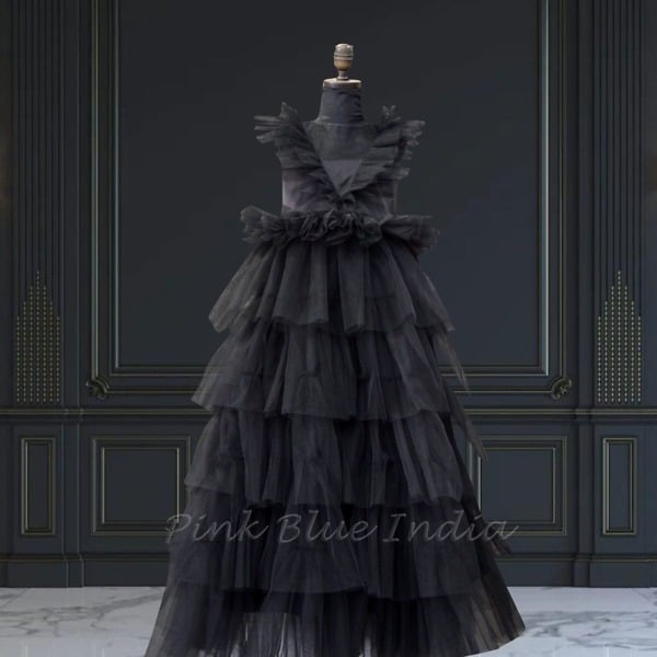 Girls Wednesday Addams black dress sleeveless. perfect for Wednesday Addams Halloween costume, theme birthday party, cosplay, Christmas, school day.
