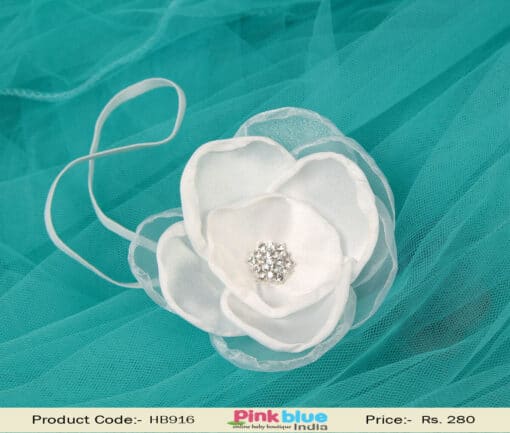 Do you wish to try a completely different gorgeous pretty hair accessory for your girl? If yes, then shop online in India for the elegant white colored sleek headband with a beautiful flower motif in net with silver balls embellished in the center. Team it up with designer gowns, tutu skirts and other partywear clothing.